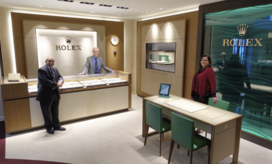 David Fairclough opened his brand new Rolex Watch Corner last month after 2 years of planning and 2 months of construction. The new Rolex watch corner really completes the store which includes a huge round center island surrounded by a Bridal Area and David Yurman Boutique. Bruce Freshley visited the store in mid October just in time for this photo. “Isn’t it just gorgeous…such an elegant space” David declared “Everything Rolex does is simply first class…and there’s no question the new Corner is driving more sales. We are so fortunate to have such a great partner”.