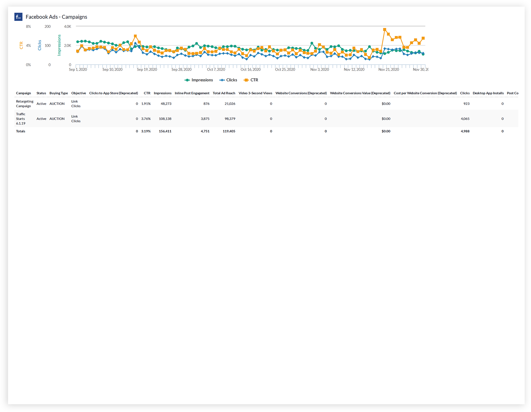 This client is located in a city of 22,000 residents. We ran a retargeting social media campaign, and the result of this over a 3 month period was 156,411 impressions, 4,751 engagements with that post, resulting in 4,988 clicks to their website.